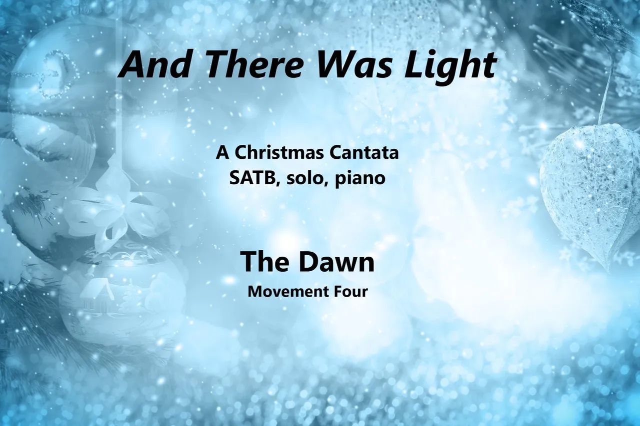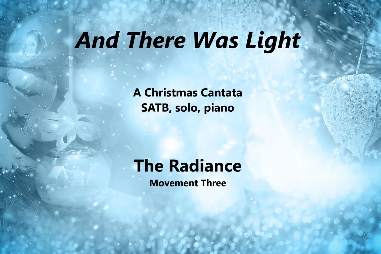 Original text by Carol Koffinke, with excerpts from the Bible interjected on occasion. This is a four movement Christmas cantata which explores the theme of light on that wondrous night that Christ was born. Movements include “The Star”, “The Candle”, “The Radiance”, and “The Dawn” each from a unique perspective. Requires soprano and baritone soloists.