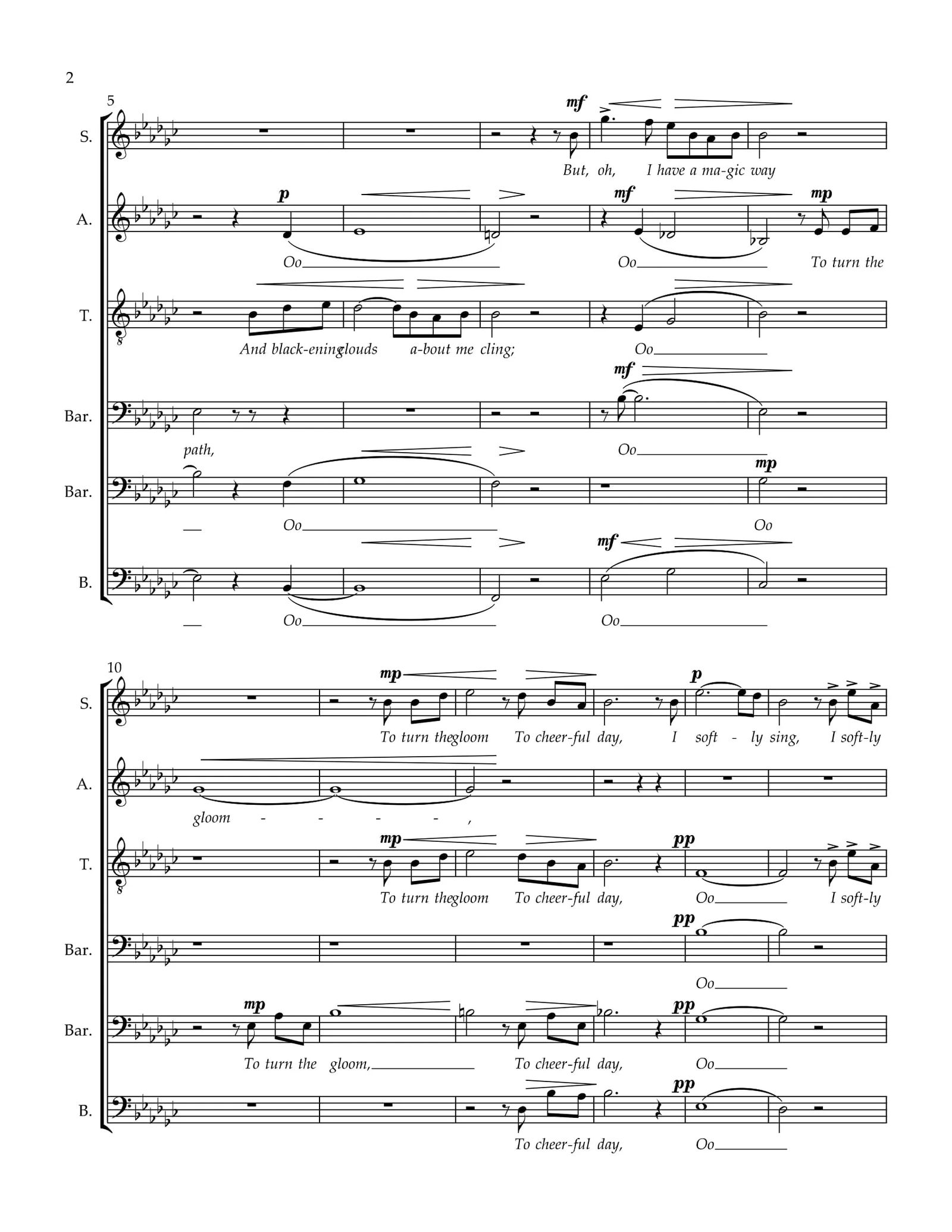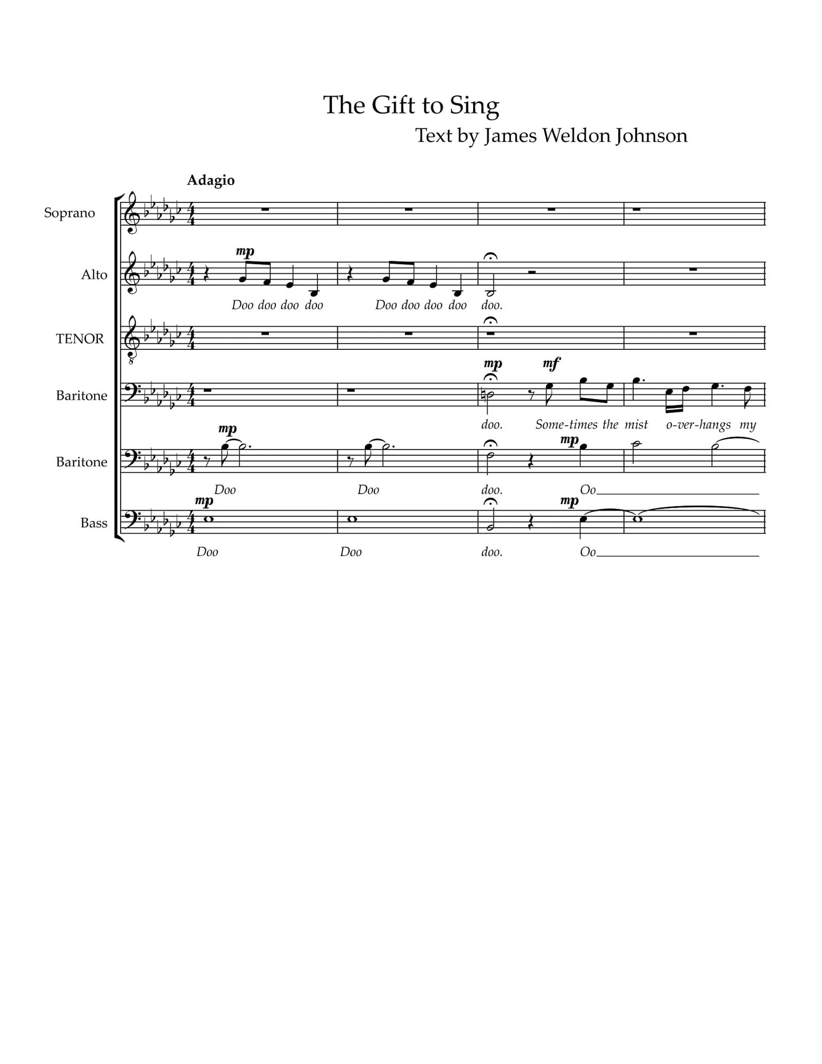 Arrangement of a poem by James Weldon Johnson who was known during the Harlem Renaissance for his poems, novels, and anthologies, collecting both poems and spirituals of black culture. The piece conveys the ability of the human spirit to endure adversity via the simple act of singing.